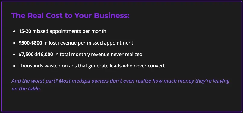 Your business is leaking money every time a lead goes unanswered for more than 5 minutes. While you're busy with patients, managing staff, or simply away from your phone, potential clients are booking with your competitors.